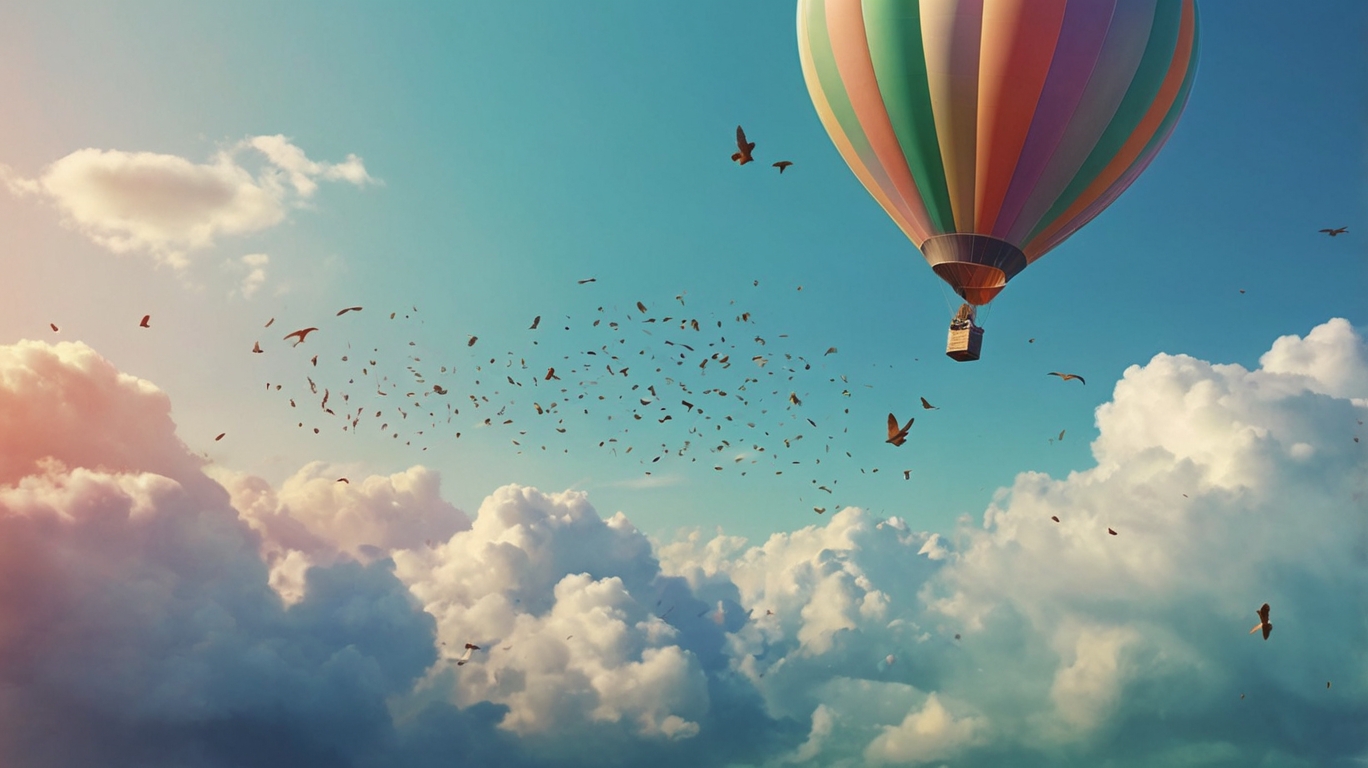 Balon biraz rahatladı ve yolculuğuna devam etti. Az sonra, renkli kuşlar yanına geldi. Mavi, sarı ve kırmızı tüylü güzel kuşlar, balonun etrafında dans eder gibi uçuyorlardı.